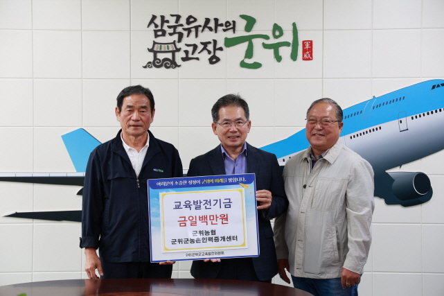 경상포커스=전상철기자군위농협 군위군농촌인력중개센터(센터장 황두호)10일 군위군청을 방문해 지역의 교육 발전과 인재양성을 위해 써달라며 100만원의 교육발전기금을 기탁했다.