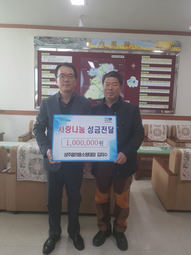 【경상포커스=전상철 기자】성주군 김치수 성주읍의용소방대장은 21일 성주읍을 방문해 희망2018 나눔캠페인에 동참하고자 성금 100만원을 기탁했다.