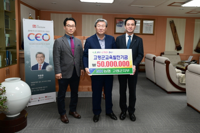 곽용환 고령군교육발전위원회 이사장은 “매해 농협 고령군 지부에서 고령군의 교육발전에 큰 관심을 가져주셔서 감사드리며, 기탁해주신 기금을 지역인재 육성을 위해 뜻있게 쓰도록 하겠다.”고 말했다.