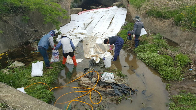 신고를 받은 성주군과 소방당국 등은 방제둑과 오일펜스, 흡착포 등을 설치하는 등 방재작업을 벌였다.
