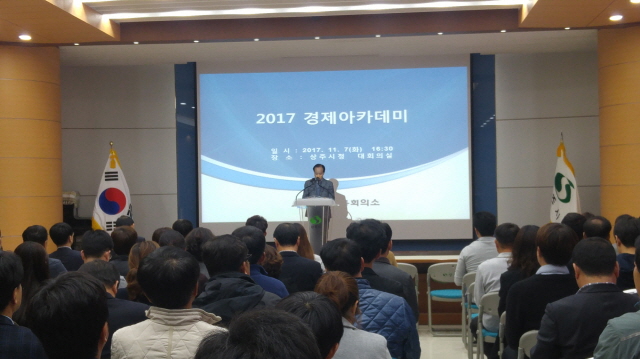 【경상포커스=김경희 기자】상주상공회의소가 주관하는 ‘2017년 경제아카데미’가 지난 7일 시청 대회의실에서 기업체 임직원과 상주시 공무원 110여 명이 참석한 가운데 개최됐다.